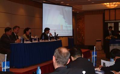 25日早上9點,“超越2004”客戶技術交流會正式開始,福伊特造紙技術中國區總裁劉明明女士首先致歡迎辭。劉明明說,幾十年前,VOITH就是業內被認為是第一流的設備供應商并建立了造紙技術的標準,并以其服務、技術實力和與眾不同的、專業化的項目管理而著稱。所有這些標準都是成功的造紙生產的基礎,但實現長期成功的、具有決定意義的關鍵詞卻是可靠性!邀請各位出席這次交流會,福伊特將向各位提供VOITH的信息、技術以及全面的服務。我們確信只有從漿料制備到造紙設備以及整飾和包裝的完美工藝技術才對高效率的生產工藝具有重要作用。為此邀請大家聽一聽演講,并提出問題,共同進行深入的討論和對話。