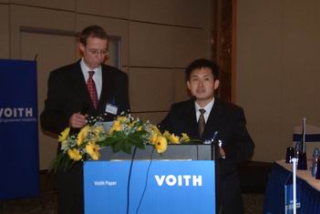 福伊特造紙控制總經理Josef Sattler與福伊特造紙自動控制項目經理鄭慶華做了《Voith Paper Automation——把過程變成了數據》報告。