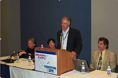 鄧恩先生(站立者)在Graph Expo的總結(jié)會(huì)上發(fā)言