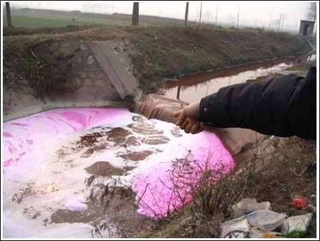 1月10日,記者在武功縣小村鎮西尼安村附近看到,這里的渭惠渠渠水已經變成暗紅色,水面漂浮著大量的粉紅色泡沫,散發出刺鼻的氣味。當地一位成姓村民告訴記者,渭惠渠是楊虎城將軍在上世紀30年代修建的一條灌溉渠,沿途眉縣、扶風、武功、興平等地幾十萬畝農田因此受益,當地老百姓親切地稱之為“將軍渠”。近幾年,附近一些造紙廠大肆向渠中排污,灌溉渠成了排污渠。村民用渠水灌溉農田會“燒”死莊稼,牲畜喝了舌頭潰爛,令沿途百姓叫苦不迭。據悉,楊虎城將軍的女兒楊拯美、楊拯英女士在得知渭惠渠受到污染并部分破損后,非常難過,并斥巨資對渭惠渠進行了修復。
