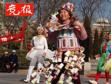 用過的快餐盒“織”成了精致的上衣,用過的紙杯則被穿在一起成了鮮艷的長裙,再加上廢紙折成的帽子,近日,在方莊建設節(jié)約型社區(qū)宣傳日上,來自芳城園一區(qū)群芳藝術團的6位身著環(huán)保時裝的老太太,搶足了風頭。