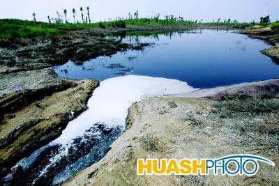 造紙廢水未經(jīng)處理偷排入沙漠中形成“黑湖”