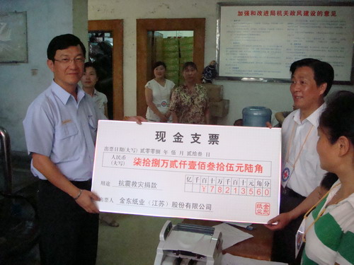 金東紙業(yè)員工向地震災(zāi)區(qū)捐款78萬元