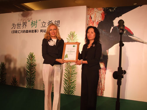 芬歐匯川北京代表處首席代表素依蘭(Soile Korhonen)女士向中國綠化基金會捐贈樹木