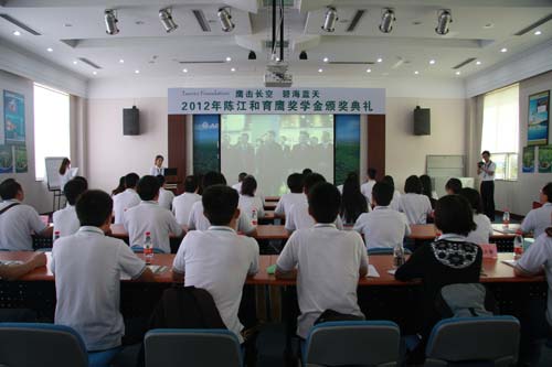7月7日,“鷹擊長空,碧海藍天—2012年陳江和育鷹獎學金”頒獎典禮在位于日照市的山東亞太森博漿紙有限公司舉行,新加坡金鷹集團、亞太森博的相關領導,來自國內8所知名高校的獲獎學生及老師參加了頒獎典禮。