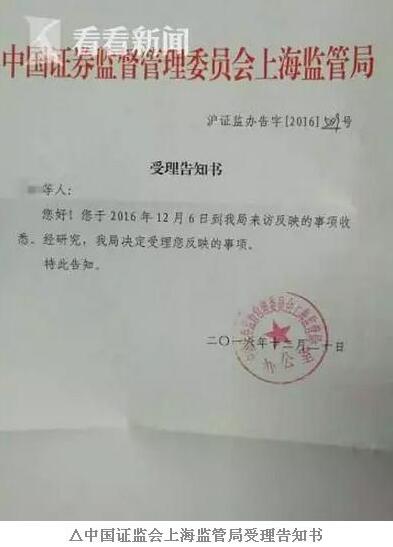 12月6日,舒蘭等投資人又向中國證券監督管理委員會上海監管局(簡稱“上海證監局”)反映鉅派集團及鉅洲資產問題,并遞交書面投訴狀。半個月后,上海證監局辦公室書面回復“決定受理”。