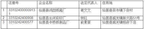 以下為此次仙居縣市場監督管理局發布的紙制品與包裝企業吊銷名單。