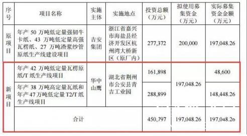 新項(xiàng)目實(shí)施主體變更為山鷹紙業(yè)全資子公司山鷹華中紙業(yè)有限公司,華中山鷹于2017年1月設(shè)立并取得營業(yè)執(zhí)照,注冊(cè)資本為5000萬元人民幣。