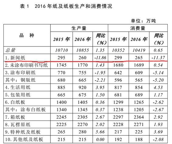 來自中國造紙協會的數據顯示,2016年在生活用紙和包裝用紙均有增長的情況下,新聞紙的產量和用量大幅下滑11%,而從2010年起,這已經是新聞紙產量用量第七年下滑,也是從那個時候起,隨著智能手機的普及,新媒體開始蓬勃發展,并不斷蠶食傳統紙媒的市場份額……