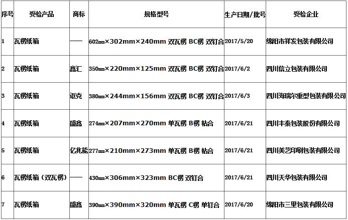 2017年綿陽(yáng)市瓦楞紙箱產(chǎn)品質(zhì)量監(jiān)督抽查所檢項(xiàng)目符合相關(guān)標(biāo)準(zhǔn)的產(chǎn)品