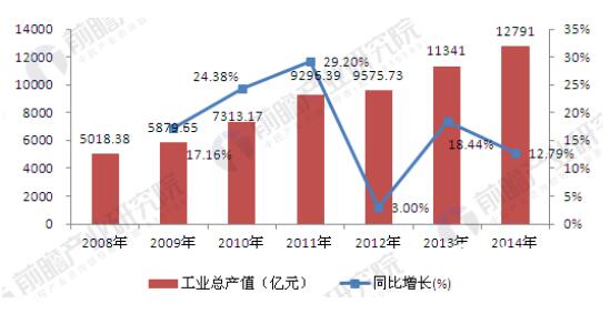 2008-2014年包裝行業(yè)工業(yè)總產(chǎn)值及增長(zhǎng)率走勢(shì)(單位:億元,%) 與此同時(shí),2008-2014年,我國(guó)包裝行業(yè)銷售收入逐年增加,2014年包裝行業(yè)實(shí)現(xiàn)銷售收入12140.07億元,為近年來的最大值,同比增長(zhǎng)10.86%。 2008-2014年,包裝行業(yè)產(chǎn)成品則呈波動(dòng)趨勢(shì)。2008-2009年逐年增加,2010年實(shí)現(xiàn)產(chǎn)成品290.15億元,同比下降7.84%;2011年實(shí)現(xiàn)產(chǎn)成品299.08億元,同比增長(zhǎng)17.60%,為近年來的最大增幅;2012年實(shí)現(xiàn)產(chǎn)成品285.35億元,同比下降4.59%;2013年,實(shí)現(xiàn)產(chǎn)成品306.42億元,同比增長(zhǎng)7.38%。2014年,實(shí)現(xiàn)產(chǎn)成品349.58億元,同比增長(zhǎng)14.09%。 包裝行業(yè)前景可期 隨著我國(guó)商品經(jīng)濟(jì)的繁榮與發(fā)展,人民生活質(zhì)量的提高以及消費(fèi)水平的提高,生活節(jié)奏的加快,消費(fèi)者對(duì)微波食品、休閑食品、冷凍食品等速食品的需求量越來越大。這種趨勢(shì)將加速速凍食品、方便食品包裝的需求;與此同時(shí),政府提出了農(nóng)業(yè)產(chǎn)業(yè)化發(fā)展計(jì)劃,重點(diǎn)發(fā)展農(nóng)副產(chǎn)品深加工,而農(nóng)副產(chǎn)品深加工項(xiàng)目需要配套大量包裝機(jī)械和包裝材料;國(guó)家發(fā)展和改革委員會(huì)將食品加工和包裝機(jī)械列為食品工業(yè)發(fā)展的重點(diǎn)優(yōu)先發(fā)展領(lǐng)域,這些都將給包裝行業(yè)的發(fā)展帶來廣闊的前景。 根據(jù)最近六年中國(guó)包裝行業(yè)的銷售收入的數(shù)值及其走勢(shì),可大致估算未來幾年包裝行業(yè)的銷售收入,預(yù)計(jì)到2020年,中國(guó)包裝行業(yè)的銷售收入將突破1.94萬億元。