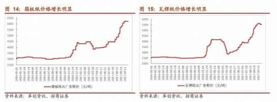 隨著小紙廠的大量關(guān)停,小型紙箱廠的低價購進(jìn)原材料的渠道消失,隨著供給側(cè)改革帶來的箱板瓦楞紙行業(yè)的集中度提升,包裝企業(yè)的原材料購買渠道趨于同質(zhì)。同樣向大型原紙廠商采購原紙的過程中,采購量大、信譽(yù)較好的大紙箱廠獲得一定的價格優(yōu)勢,成本優(yōu)勢從小紙箱廠倒臵到大紙箱廠手中。 下游客戶與大紙廠合作保障自身供應(yīng)鏈安全 從2016年11月以來,箱板紙、瓦楞紙的價格持續(xù)迅速上漲。截止2017年11月,一年的時間內(nèi)箱板紙漲幅達(dá)到117%,瓦楞紙漲幅達(dá)到98%,紙價突破歷史高點(diǎn)。 在原紙去產(chǎn)能,行業(yè)存在供給缺口的背景下,小型包裝廠由于缺乏貨源被而被迫停止生產(chǎn)。在上游產(chǎn)量小型紙廠大量停產(chǎn)的情況下,大型紙廠選擇優(yōu)先保證長期合作的大型包裝廠的供應(yīng),小型包裝廠難以拿到箱板和瓦楞紙。同時,在紙價快速上漲的階段,紙廠不再為下游包裝廠提供賬期,小包裝廠由于資金實(shí)力薄弱,難以負(fù)擔(dān)較高的資金壓力備貨。大型包裝廠與上游大型紙廠有著長期穩(wěn)定的合作,同時自身資金實(shí)力雄厚,存貨管理能力強(qiáng),在紙價快速上漲的情況下能夠有貨源保證。 經(jīng)歷了2016年四季度以來包裝紙箱的短缺,下游客戶在選擇包裝供應(yīng)商時越來越重視自身包裝供應(yīng)鏈的安全,對于紙箱廠的穩(wěn)定供貨能力尤為看重,在小包裝廠難以保證穩(wěn)定供貨的情況下,下游企業(yè)紛紛轉(zhuǎn)向與大型包裝廠合作,從而保證能夠有穩(wěn)定的包裝供應(yīng)。行業(yè)集中度呈現(xiàn)提升趨勢。