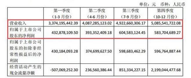 2017年各個(gè)季度主要財(cái)務(wù)數(shù)據(jù):