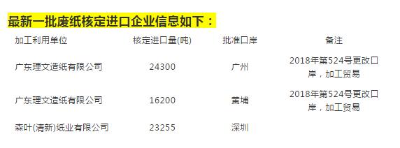 2018年5月15日,環(huán)保部固廢中心發(fā)布第十二批建議批準的限制進口類申請明細表,這一批次僅有2家造紙企業(yè)獲得進口許可,且核準量少的可憐。有分析機構稱:當前美廢解禁還未到時間點,又趕上此次進口許可量驟減,國廢地位只會越來越高,價格也將水漲船高! 新一批外廢許可僅2.3萬噸,不足前面批次的零頭,這點量夠干啥? 5月15日,2018年第12批限制進口類名單公示,此次核發(fā)名單一共含有兩家紙廠,其中廣東理文屬于更改口岸,故只有一家紙廠拿到許可證,實際新增核發(fā)量僅2.3萬噸,不僅是12個批次里最少的一次,而且核定量還不足前面批次的零頭。 最新一批廢紙核定進口企業(yè)信息如下: