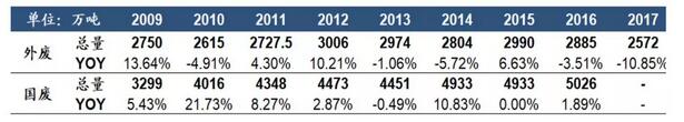 數(shù)據(jù)來源:Wind資訊,東吳證券研究所 外廢進(jìn)口趨緊難改,國廢資源屬性凸顯 廢紙是我國箱板、瓦楞、白板紙的主要生產(chǎn)原料,且隨著包裝紙需求的持續(xù)增長,我國廢紙的消費(fèi)量也呈現(xiàn)剛性上升的態(tài)勢。歷史情況來看,一般來說我國國廢的使用比例占比廢紙總量的2/3、外廢使用比例則占比1/3左右(其中美廢的使用比例占比外廢總量的約1/2)。 18年我國嚴(yán)控固體廢物進(jìn)口,尤其是針對(duì)廢紙領(lǐng)域開始實(shí)施含雜率不高于0.5%的進(jìn)口新政,促使世界各國對(duì)廢紙出口方案進(jìn)行了深度調(diào)整,外廢的進(jìn)口量或?qū)㈤L期遞減。據(jù)5月15日的《日本經(jīng)濟(jì)新聞》報(bào)道,日本的廢紙貿(mào)易商已經(jīng)連續(xù)3個(gè)月決定放棄出口廢舊瓦楞紙至中國,歐洲各國也在將“可回收資源”出口加速向東南亞進(jìn)行轉(zhuǎn)移。我們認(rèn)為,在外廢進(jìn)口遞減的過程中,國廢的資源屬性將持續(xù)凸顯,價(jià)格向上之勢難以扭轉(zhuǎn)。 圖表2:歷年廢紙消費(fèi)量總覽(單位:萬噸)