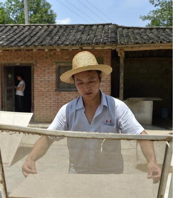 擁有幾千年制作歷史的西和麻紙出產(chǎn)于甘肅省隴南市西和縣,是一種小尺幅土產(chǎn)紙張,以構(gòu)樹皮為原料,經(jīng)過泡、蒸、踩、砸、切、抄等72道工序制作而成。西和縣通過傳承人帶動、技術(shù)扶貧培訓(xùn)和電商渠道銷售等方式,幫助農(nóng)民掌握造紙技藝,打開產(chǎn)品銷路。新華社記者李笑攝