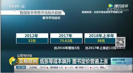 圖書漲幅增速明顯增加,但仍不能緩解出版社壓力 “開卷信息”發(fā)布的《2018上半年中國圖書零售市場趨勢和特點(diǎn)》)報告顯示,2012年新書平均定價52元,2017年新書平均定價75.62元,比2016年增加3元。2018年上半年,新書平均定價88元,在2017年的水平上上漲近13元,漲幅增速明顯增加。