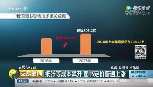 日前,央視財經(jīng)頻道《交易時間》欄目推出《紙張等成本飆升,圖書定價普遍上漲》報道,指出在紙張、人工、物流成本飛漲的情況下,圖書定價不漲,出版社只能虧本。 紙張等成本飆升,圖書定價普遍上調(diào)20-30% 去年下半年開始,我國的圖書價格出現(xiàn)了一股明顯的漲價風(fēng)。一本30多萬字的新書,定價普遍超過50元/本。進(jìn)入書店,一本書的定價逼近甚至超過100元的并不少見。