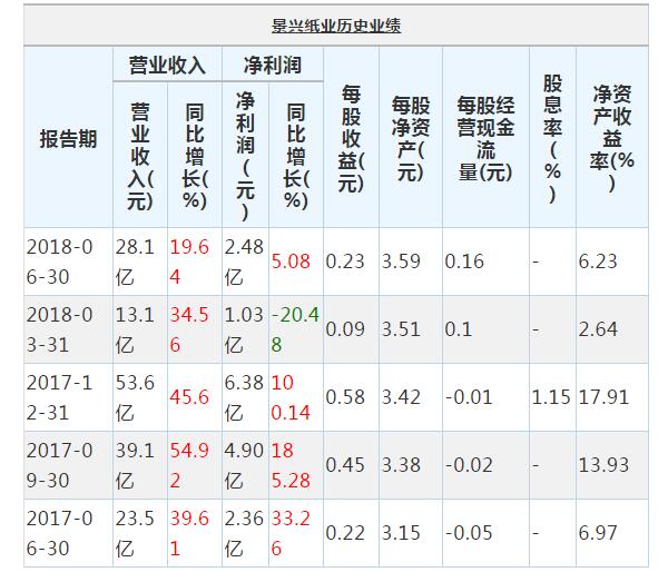 景興紙業(yè)主導(dǎo)產(chǎn)品為牛皮箱板紙、白面?、紗管紙、高強度瓦楞原紙、紙箱等系列產(chǎn)品。地處長三角杭嘉湖平原中心地帶,瀕臨上海,地理條件優(yōu)越,交通便利,是全國最大的三家以專業(yè)生產(chǎn)A級,AA級牛皮箱板紙為主的造紙企業(yè)之一。公司自1984年成立以來,以技術(shù)為依托,以品質(zhì)求生存,以服務(wù)爭市場,以效益謀發(fā)展,由一家名不見經(jīng)傳的造紙小廠發(fā)展成為擁有多家子公司的大型上市企業(yè),F(xiàn)在的景興已然發(fā)展成以造紙為龍頭,集紙制品加工為一體的現(xiàn)代化企業(yè)。 近年來,公司的業(yè)績情況如下表所示: