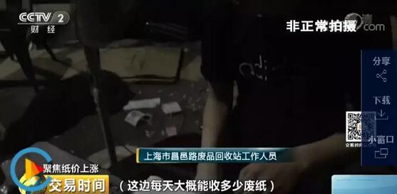 9月3日,央視財經《交易時間》欄目深度關注造紙板塊紙價上漲對產業鏈帶來的影響。央視記者采訪了上海地區廢紙回收人員、上海紙企負責人了解造紙行業現狀,同時與造紙板塊分析師對造紙行業的未來做了深度探討。據分析師所述,在紙價維持高位的情況下,對于造紙下游的包裝板塊龍頭企業十分看好。 廢紙價格水漲船高,每噸最高達3400元 工作日晚上八點鐘,在上海浦東新區昌邑路上,央視財經記者見到了不少運送廢紙箱的市民,幾乎每隔十分鐘就有一輛裝滿廢紙箱的小車經過,有的是自己家里攢的,有的是從附近的幾所商場和辦公樓收來的,會整理好統一送到附近的廢品回收站。