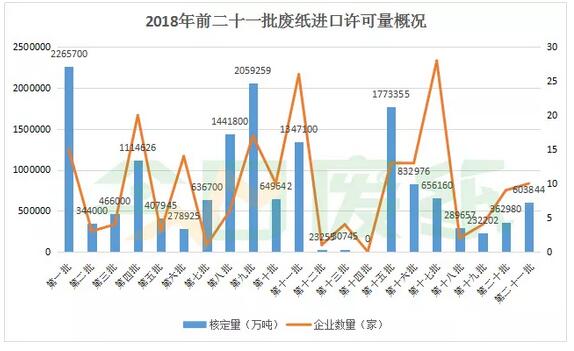 9月29日,中國固廢中心公布的2018年第21批限制進口明細,此次審核通過了玖龍紙業(天津)有限公司、浙江高陽紙業有限公司、山鷹國際控股有限公司、德彥紙業(廈門)有限公司、玖龍紙業(泉州)有限公司、聯盛紙業(龍海)有限公司、匯勝集團股份有限公司、萊州魯通特種紙業有限公司、棗莊華潤紙業有限公司、重慶理文造紙有限公司,10家紙廠共獲核準總量為60.3844萬噸。