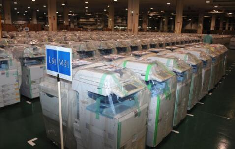 這是3月23日在日本靜岡縣御殿場市理光環(huán)境事業(yè)開發(fā)中心拍攝的回收再利用的復(fù)印機(jī)倉庫。新華社記者華義攝