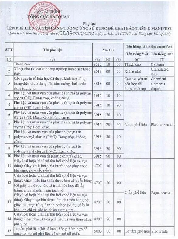 隨著中美貿易戰的持續升溫,“鷸蚌相爭,漁翁得利”,越來越多的跨國公司將他們的生產線轉移到周邊國家,比如:越南,F在越南既希望抓住巨大的機遇,增加財政收入,促進制造業發展,又不愿過多的垃圾進入本國,影響生態環境和政治穩定。對于此種情況,越南海關近日發布了一則新的規定,在允許廢料進口的情況下,增加一些把控要求。 在廢紙(Paperwaste)中,中國明確禁止的混合廢紙(稅則號為47079000),在越南仍然屬于可進口的廢料。其他47071000,47072000和47073000,與中國一樣,都可以正常進口。這對正在或者計劃到越南進行原紙生產或廢紙漿生產的中國企業來說,無疑是一個好消息。 相關通知內容如下: