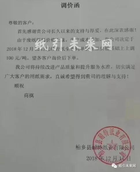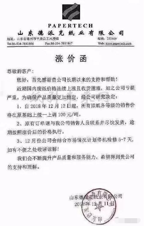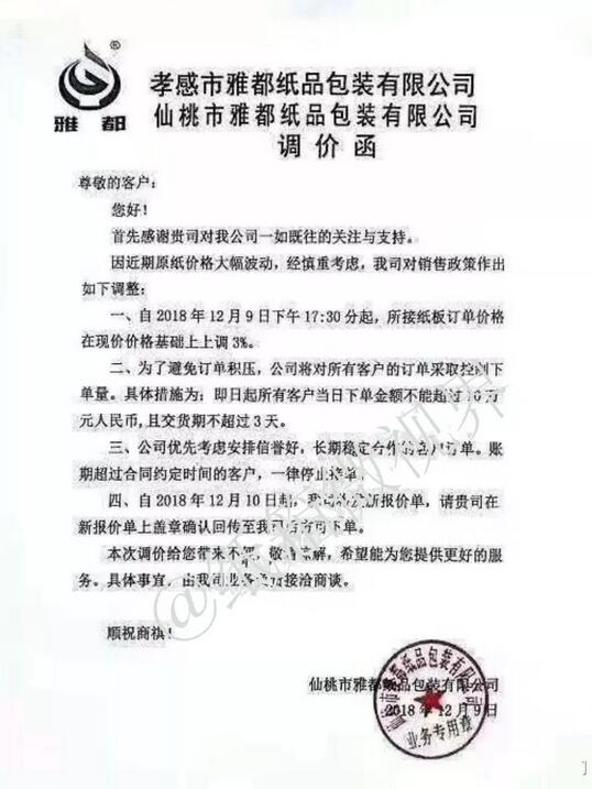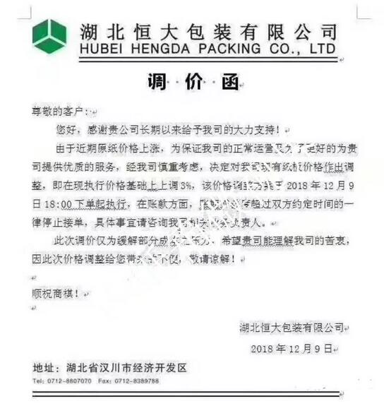 導(dǎo)語:剛送走表面轟轟烈烈、實(shí)際靜悄悄的雙11,接踵而至的就是雙12后勁不足的噩耗。在終端需求市場普遍偏弱的情況下,包裝紙原料價格卻全線上揚(yáng)!供需雙向壓迫下,誰來救一下紙箱! 雙11近15億件包裹背后是無數(shù)的包裝箱需求,雙12接踵而至后勁不足 國家郵政局?jǐn)?shù)據(jù),今年“雙十一”期間產(chǎn)生近15億件包裹,全年快遞業(yè)務(wù)量將達(dá)到400億件。這龐大數(shù)據(jù)的后面是無數(shù)的包裝箱需求,每年雙十一電商節(jié)都可以帶來一波包裝紙銷售旺季。 然而,剛送走表面轟轟烈烈、實(shí)際靜悄悄的“雙十一”,接踵而至的就是雙十二后勁不足的噩耗。 雙十二的聲勢比起此前的雙十一弱了不少。 雙十二自誕生以來,就存在著一個奇特的“清庫存”定位。在一些品牌商家眼中看來,如今的雙十二不過是一個常規(guī)的打折促銷活動,并沒有太多特別的意義。再加之短短一個月內(nèi)雙十一與黑五的紛至沓來,消費(fèi)者意愿早已大幅下降,商家再繼續(xù)為雙十二投入大量營銷開支也很難獲得對應(yīng)的回報。 這也就不難理解為何各方對雙十二的線上端如此冷淡。 廢紙、原紙、紙板漲價函滿天飛,紙箱人的心也跟著提到了嗓子眼 與冷淡雙十二行情不同,在終端需求市場普遍偏弱的情況下,包裝紙原料價格卻提前迎來了一波價格上揚(yáng)。原料價格全線上揚(yáng)! 持續(xù)下降多日之后,國廢價格首次反彈! 12月8日,全國十多家紙廠上調(diào)廢紙收購價20-100元/噸,其中不乏漳州山鷹、漳州聯(lián)盛、天津玖龍、河北玖龍等大型紙廠。 北方地區(qū)三大玖龍上調(diào)100,河南河北廠家也多有跟漲。山東地區(qū)兩大匯勝和世紀(jì)陽光上調(diào)50-100,整體地區(qū)仍以上漲為主。南方華東江浙皖主流紙廠領(lǐng)漲,地區(qū)出現(xiàn)大規(guī)模上漲態(tài)勢,但隨即浙江山鷹在下午轉(zhuǎn)跌下調(diào)30,似乎預(yù)示著這波上漲或?qū)⒔K結(jié)。華南地區(qū)再度轉(zhuǎn)漲,廣東理文、泉州玖龍紛紛上調(diào)50-70,周邊部分廠家也有小幅上漲。 在經(jīng)歷過之前跌無止境的國廢市場,近日,國廢市場卻忽而再起風(fēng)云,迎來大面積的漲價。 而沉靜了一段時間的原紙市場,也被上游原料價格刺激得漲價函漫天飛舞,全國各地新增多達(dá)30多張原紙漲價函,最高漲幅達(dá)到200元/噸。幾乎同時,紙板市場也不甘落后,以合興包裝為首的漲價函紛飛。