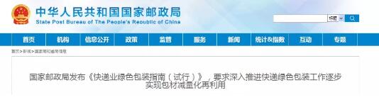 導語:近日,根據《快遞暫行條例》等有關規定,國家郵政局制定發布了《快遞業綠色包裝指南(試行)》(以下簡稱《指南》),規定了行業綠色包裝工作的目標,即快遞業綠色包裝堅持標準化、減量化和可循環的工作目標,加強與上下游協同,逐步實現包裝材料的減量化和再利用。