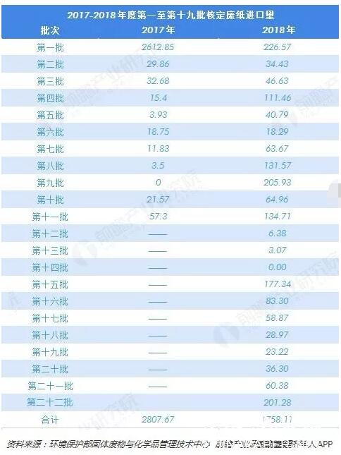 導語:我國廢紙進口管控趨嚴,2018年廢紙審批額度較2017年下滑37.4%,廢紙進口明顯向龍頭企業傾斜,獲得進口配額的龍頭企業的成本優勢進一步擴大。業內人士分析認為,短期中小紙廠因成本壓力退出競爭,長期中小紙廠進一步被淘汰。 廢紙進口管控趨嚴,2018年廢紙審批額度較2017年下滑37.4% 2017年以來,我國廢紙進口相關政策陸續推出,廢紙進口管控趨嚴。2017年12月,環保部下發《進口廢紙環境保護管理規定》和《限制進口類可用作原料的固體廢物環境保護管理規定》,對廢紙進口進行規范。 相比于老規定,對于廢紙進口的限制更加嚴格: (1)限制5萬噸以上紙企才有外廢額度申請資格; (2)取消廢紙貿易商的外廢進口資格,于公布日起實施。 2017年12月29日,環保部下發《進口可用作原料的固體廢物環境保護控制標準—廢紙或紙板》,相比于當時實施版本,最大變化是將進口廢紙含雜率從1.5%降至0.5%。并確定2018年3月1日起實施。 受黨中央領導對于進口洋垃圾的高度重視,環保執法力度日益趨嚴,我國進口廢紙審批總額度審批愈發嚴格,從2015年的5347萬噸迅速降低到2017年的2713萬噸。 經統計,2018年前22廢紙審批總額度為1758.11萬噸,較2017年下滑37.4%。