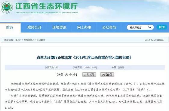 近日,江西省生態(tài)環(huán)境廳正式印發(fā)《2019年度江西省重點(diǎn)排污單位名錄》!睹洝穼(shí)行分類管理。按照受污染的環(huán)境要素分為水環(huán)境重點(diǎn)排污單位名錄、大氣環(huán)境重點(diǎn)排污單位名錄、土壤環(huán)境污染重點(diǎn)監(jiān)管單位名錄等。江西省2019年度納入“名錄”管理企業(yè)共1251家,其中水重點(diǎn)類別623家、大氣重點(diǎn)類別317家、土壤重點(diǎn)類別311家。其中,62家造紙廠上了該名錄。