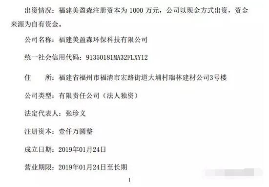 1月24日晚間,美盈森集團股份有限公司公告稱,公司于2019年1月24日在福建省福清市投資設立全資子公司福建美盈森環保科技有限公司,并領取了營業執照。
