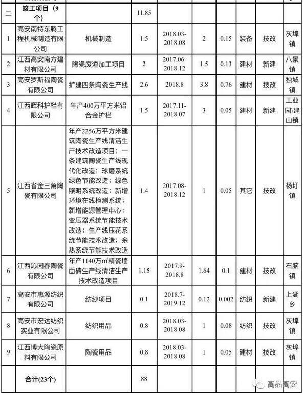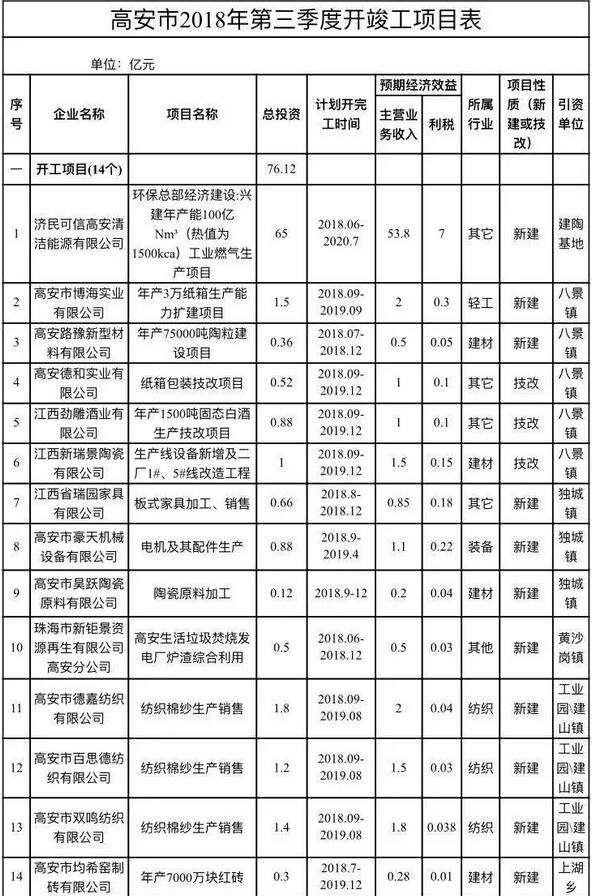 近年來(lái),高安的投資步伐并沒(méi)有停滯的跡象,新項(xiàng)目反而層出不窮。單是在2018年第三季度,當(dāng)?shù)卣镜拈_(kāi)竣工項(xiàng)目就高達(dá)23個(gè),也為博海包裝擴(kuò)建注入了強(qiáng)大的底氣。詳情如下: