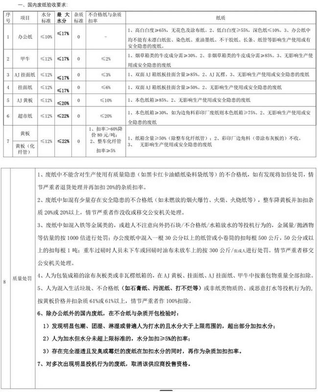 一、國內廢紙驗收要求