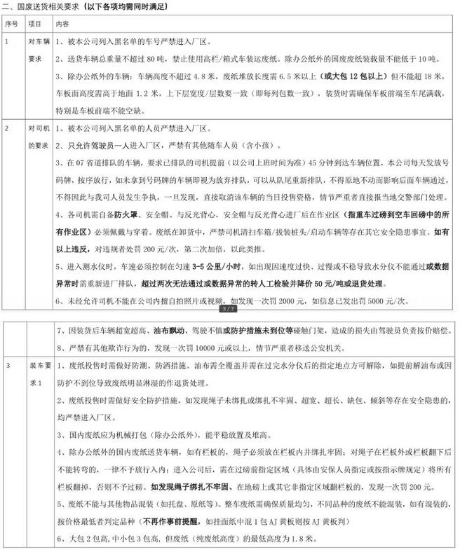 浙江景興紙業股份有限公司國內廢紙收購相關要求
