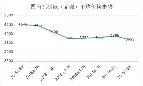 從圖上我們可以看出,成品紙價格在去年9月-11月之間有一個巨大的下降,從4500左右下滑到3700左右。進入2019年后,成品紙價格緩慢回升,從3700重新上調至3900左右。但是3月玖龍的連續下調,讓成品紙價格再次進入一個低谷,現已跌破3700,且有繼續下調的趨勢。 此次成品紙價格下調主要受三個原因影響: 1、下游市場的低迷 從去年年中開始,我國瓦楞紙、箱板、白板月消耗量呈每況愈下的形勢,從高點的月消耗接近500萬噸跌至年初的不足400萬噸,下滑了兩成有余。與此同時,進口成品紙的數量卻在不斷攀升,此消彼長之下,紙廠的日子越來越難過。市場的不景氣讓紙企承受了巨大的成本壓力,已有紙廠無奈破產。 2、產能的不斷增加 2017年我國紙業進入一個異常繁榮的階段,各紙廠紛紛計劃擴大產能。但是進入2018年后,由于種種原因,市場需求萎靡,而新增的產能逐漸釋放。紙廠高企的庫存成為了打壓成品紙價格的因素,為了快速去庫存回籠資金,紙廠不得不選擇選擇大幅讓利降價。 3、國內外的經濟形勢 受去年中美貿易戰影響,國內宏觀經濟增速開始放緩,與國民經濟息息相關的造紙業首當其沖。數據顯示,2018年我國造紙行業總收入雖然同比增長8.5%,但是總利潤同比下滑了8.5%。中美貿易戰雖然有所緩和,但是宏觀經濟環境依然不容樂觀,造紙業的壓力仍在。 成品紙的銷售情況直接影響了廢紙的價格,在成品紙萎靡不振的態勢下,國廢的價格近來也是不斷探底。 從目前趨勢來看,隨著成品紙的市場變化,國廢市場未來仍然會很曲折。但五六月份將逐漸進入傳統的旺季,加上稅改的利好,所以國廢市場未來仍然可期。