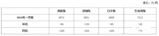 第一季度進口木漿行情簡析 一季度進口木漿外盤穩(wěn)中探漲,尤其是闊葉漿外盤牌價持續(xù)堅挺,加之春節(jié)前后傳統(tǒng)備貨期等因素相互影響,其中1-2月份針葉漿累計提漲100-250/噸,闊葉漿提漲200-600/噸。但是由于終端需求面遲遲未有效放量及前期外盤貨源的正常到港,導(dǎo)致主要港口地區(qū)紙漿庫存年后下降速度遲緩。 數(shù)據(jù)顯示,3月份起進口木漿市場成交仍偏剛需,淡季氛圍提前釋放,價格穩(wěn)中下行50-300/噸。其中闊葉漿的價格相較于1月底的價格略低。而化機漿、針葉漿的價格基本已跌落至去年底價格。 2019年進口木漿價格同環(huán)比一覽表