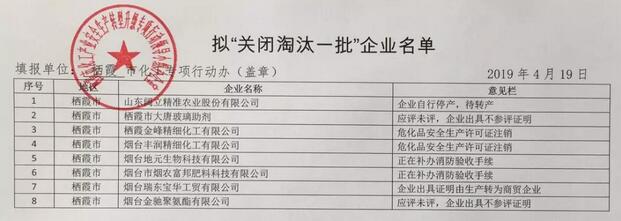 濱州擬“關閉淘汰一批”(第一批)化工生產企業名單