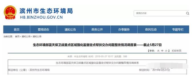 5月27日,山東省濱州市生態環境局發布《生態環境部藍天保衛戰重點區域強化監督定點幫扶交辦問題整改情況調度表》。