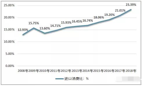 資料來源:智研咨詢整理 據測算我國紙漿產品進口依存度從2008年的12.93%飆升至2018年的23.39%,除2009年以外,我國紙漿對外依存度維持增長態勢。我國不斷增長的紙漿需求以及持續拉大的供需缺口,使得我國在自身增加紙漿生產量的同時,還需要大量的從國際紙漿貿易市場進口。 在紙漿進口的過程中,多種因素影響著我國紙漿貿易的發展。從內在因素來看,國內經濟的快速增長、網購物流的增長、世界紙漿總產量的不斷增加促使了我國對進口紙漿的大量需求。另外,從外在因素來看,我國出臺了一系列的森林資源保護政策,以及匯率的不斷變化也加大了我國對進口紙漿的進口需求。 2008-2018年我國紙漿進口依存度分析