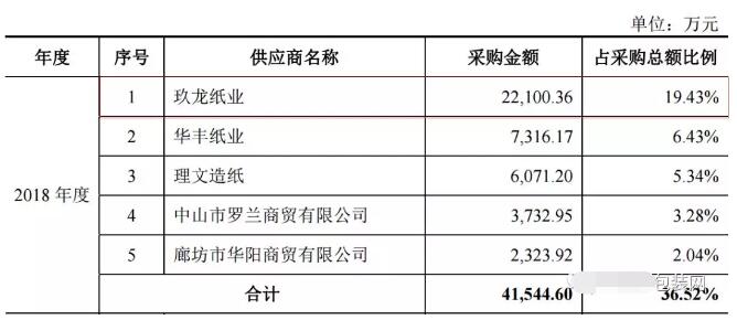 玖龍紙業是最大供應商 而在原材料方面,中榮印刷集團股份有限公司采購的原材料包括白板紙、白卡紙、瓦楞紙和油墨等。 最大的供應商是玖龍紙業,2018年度向其采購的金額為2.21億元,占采購總額的19.43%。理文造紙是中榮印刷集團股份有限公司的第三大供應商,采購金額為6071萬元,占采購總額的5.34%。