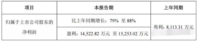 具體來看,預(yù)計(jì)實(shí)現(xiàn)歸屬于上市公司股東的凈利潤為14522.82萬元至15253.02萬元,比上年同期增長79%至88%。而上年同期公司盈利8113.31萬元。