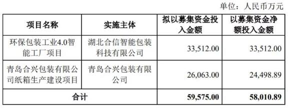 合興包裝表示,結合本次實際募集資金凈額情況,對募集資金具體投向擬作如下安排:
