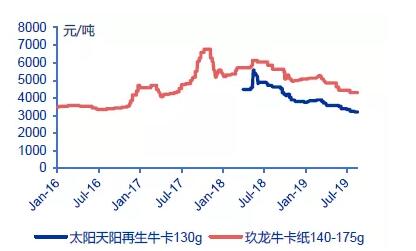 (數(shù)據(jù)來源:國家統(tǒng)計局) 受5月底多家紙廠宣布停機計劃影響,6月箱板瓦楞紙價格止跌企穩(wěn)。由于下游需求低迷,紙廠庫存逐步累積,7 月起龍頭紙廠再次帶頭下調出廠價 50-150 元/噸。 箱板紙出廠價情況