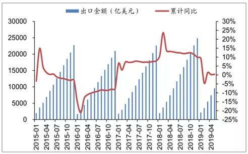 國(guó)際摩擦升級(jí)后需求總量受損,紙箱集中度仍有巨大提升空間,龍頭企業(yè)存在大幅機(jī)會(huì) 貿(mào)易格局變化背景下,包裝下游需求受到一定負(fù)面影響。 1)運(yùn)輸包裝: 以瓦楞紙箱為代表的運(yùn)輸包裝,主要承載運(yùn)輸途中的保護(hù)作用。出口下滑,直接會(huì)導(dǎo)致國(guó)內(nèi)運(yùn)輸包裝需求的下滑。 從行業(yè)競(jìng)爭(zhēng)格局的角度看,瓦楞紙箱的集中度仍有巨大的提升空間,龍頭企業(yè)存在大幅機(jī)會(huì),但是,在近期國(guó)際摩擦升級(jí)后,需求總量的受損預(yù)計(jì)將在第三第四季度有體現(xiàn)。 2)展示包裝: 裕同科技的消費(fèi)電子類(lèi)訂單不少來(lái)自于全球大客戶(hù),盡管公司大部分出口為保稅區(qū)轉(zhuǎn)口業(yè)務(wù),不直接受加征關(guān)稅的影響。但是下游客戶(hù)銷(xiāo)售低迷、成本上行等問(wèn)題,推動(dòng)上游供應(yīng)商訂單及利潤(rùn)受到一定影響。 而勁嘉股份等面向國(guó)內(nèi)需求的公司,在貿(mào)易格局背景下未收到直接沖擊。 中國(guó)貿(mào)易出口金額(累計(jì)值)