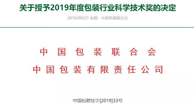 近日,中國包裝聯(lián)合會公布2019年度包裝行業(yè)科學技術獎授獎項目。共有21個項目獲獎,其中紙包裝行業(yè)有3家企業(yè)獲三等獎。