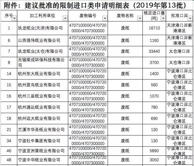 截至目前,2019年度廢紙進(jìn)口許可證獲批總額度約為1,070萬噸,獲批企業(yè)總數(shù)為79家。