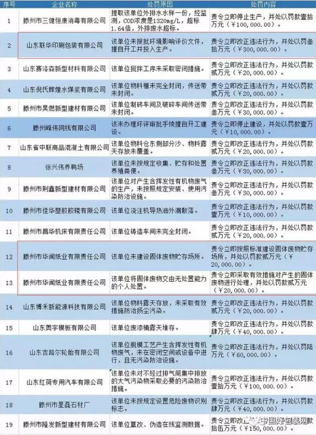 此外,還有一家印刷企業(yè)--山東聯(lián)華印刷包裝有限公司也被開了罰單。該企業(yè)因未報(bào)批環(huán)境影響評價(jià)文件,擅自開工并投入生產(chǎn),被責(zé)令立即改正違法行為,并處以罰金30萬元。