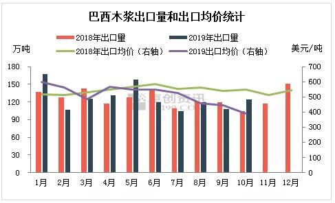 中國和歐洲是巴西紙漿出口主要目的地區,2018年發往中國的出口量占總出口量的42%,歐洲地區占總出口量的32%,圖2可以看出兩大地區的紙漿庫存高位并沒有降低巴西紙漿出口量。巴西海關公布數據顯示,7-10月巴西紙漿出口量455萬噸,與去年同期基本持平,其中到中國的紙漿出口量195萬噸,較去年同期上升15%。可以看出到中國的出口量呈現增長趨勢,主要原因:一是中國紙漿市場景氣度好于歐洲市場;二是中國紙漿下游市場體量較大,紙漿消耗能力好于全球其他地區。卓創分析,基于這兩個原因,未來中國將穩固巴西紙漿第一大出口目的地地位。 降漿價 出口均價不斷下調 穩出口伴隨的第三個操作就是降漿價,從圖2可以看出2018年7月開始,巴西紙漿出口均價下降明顯,2019年10月降至392美元/噸,環比下降12%,同比下降28%。主要原因:一是下游采買熱情不高,漿廠去庫存壓力大,低價銷貨,集中部分貨物采取低價預售或到貨談價的情況;二是巴西紙漿生產成本較低,漿廠有利潤空間支撐漿價下調,三季度巴西各漿廠財報顯示紙漿行業盈利能力仍然強勁。 后期展望 供應:12月CENIBRA漿廠兩條線持有檢修計劃,共檢修12天。Suzano旗下漿廠前三季度共生產紙漿650萬噸,預計四季度產量250萬噸左右,最新的11月巴西紙漿出口量122萬噸,環比下降7%,同比上升4%,巴西紙漿供應量穩定。 庫存情況:四季度中國和歐洲紙漿港口庫存均呈下降趨勢,但因為前期庫存處歷史高位,截至11月底庫存壓力仍存,暫不具備支撐漿價上漲條件。 需求情況:中國中大型紙廠直接采買外盤,消化一部分紙漿庫存。但隨著文化用紙傳統旺季結束、生活用紙市場持續低迷,漿市需求后勁趨弱,短期需求量難有明顯增量。 卓創分析,年末中國紙漿市場仍處供大于需階段,巴西紙漿供應量穩定,紙漿下游行業景氣度一般,部分中小紙廠春節停機時間或增加,紙漿消耗速度趨緩,預計巴西漿廠2020年上半年仍將采取主動降產量操作,漿價維持低位震蕩。
