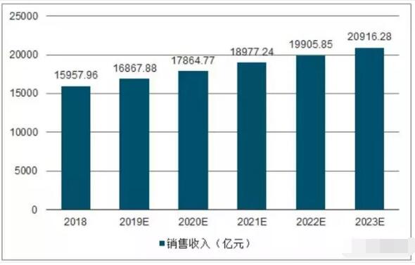 ▲白卡紙、牛卡紙價格變化 3、預測2023年包裝業銷售收入將破2萬億!